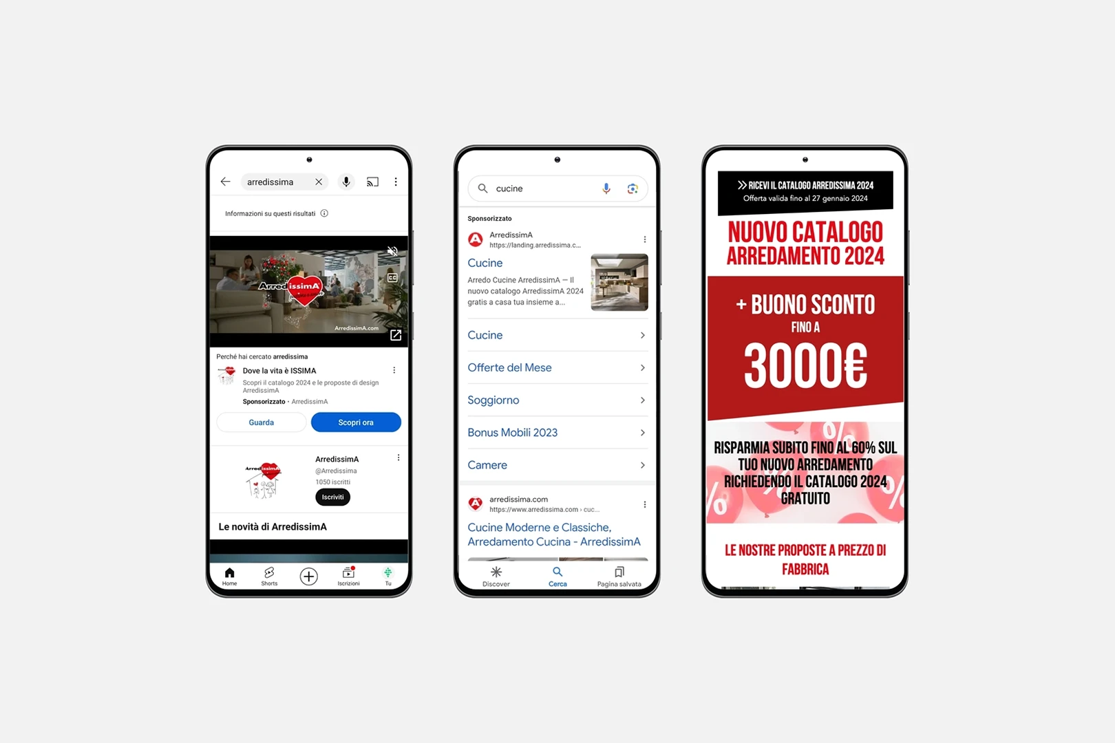 Uno dei servizi che da sempre contraddistingue la nostra collaborazione con ArredissimA riguarda la parte delle performance. Da oltre dieci anni affianchiamo l’azienda con strategie di lead generation mirate, grazie a campagne Google ADS e ADV Social. Grazie alla nostra partnership con Google, nel corso degli anni abbiamo testato numerose tipologie di campagne Google ADS (ricerca, display, video, etc) ed attivato campagne ADV sui canali social con Landing Page specifiche. Per quanto riguarda la SEO abbiamo: