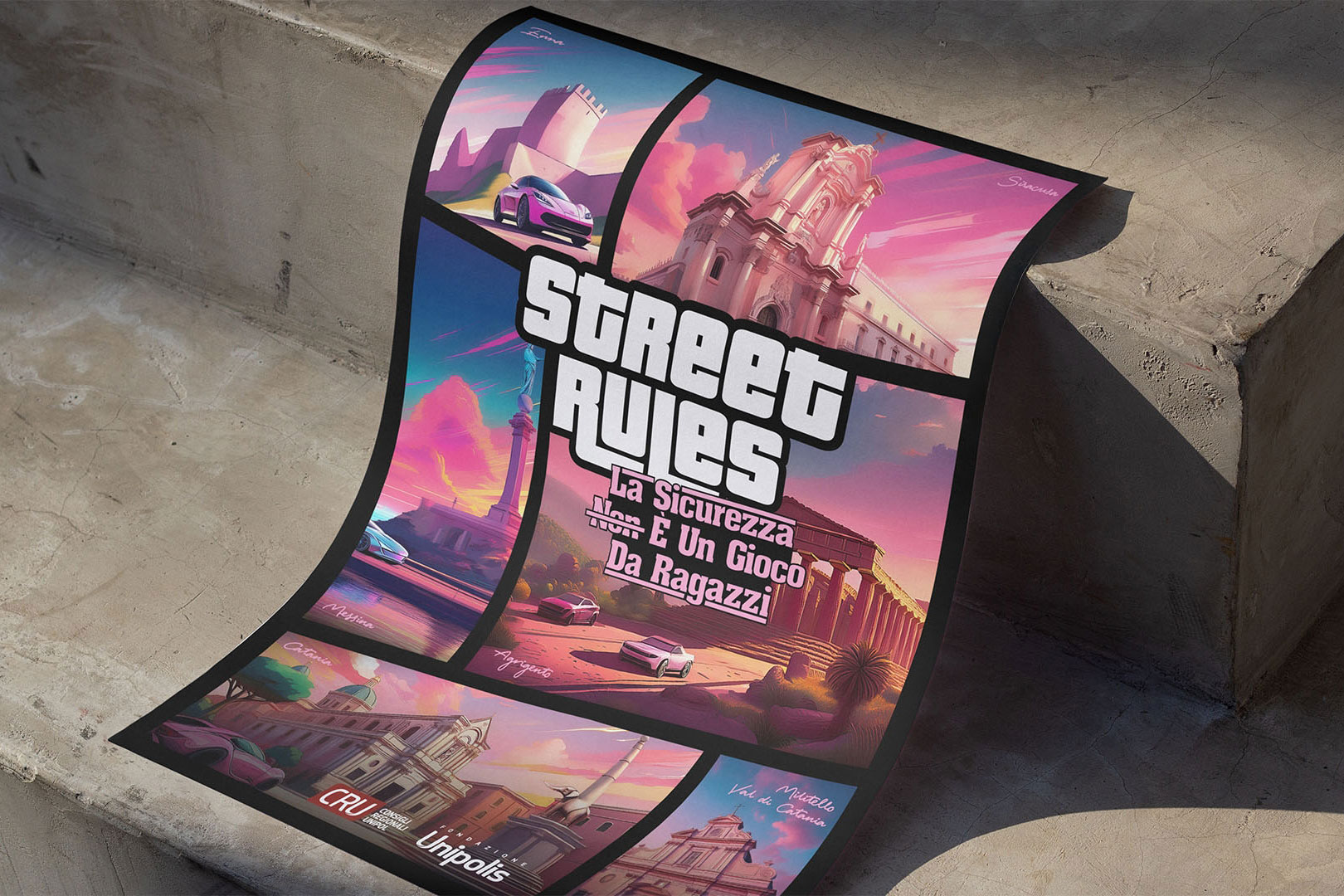 Comunicare la sicurezza stradale alla Gen Z richiede un cambio di linguaggio. Per Street Rules, Fondazione Unipolis ha coinvolto Craq Design Studio nella realizzazione dell’identità di un progetto educativo dedicato alla mobilità consapevole, pensato come un tour tra scuole e città della Sicilia.