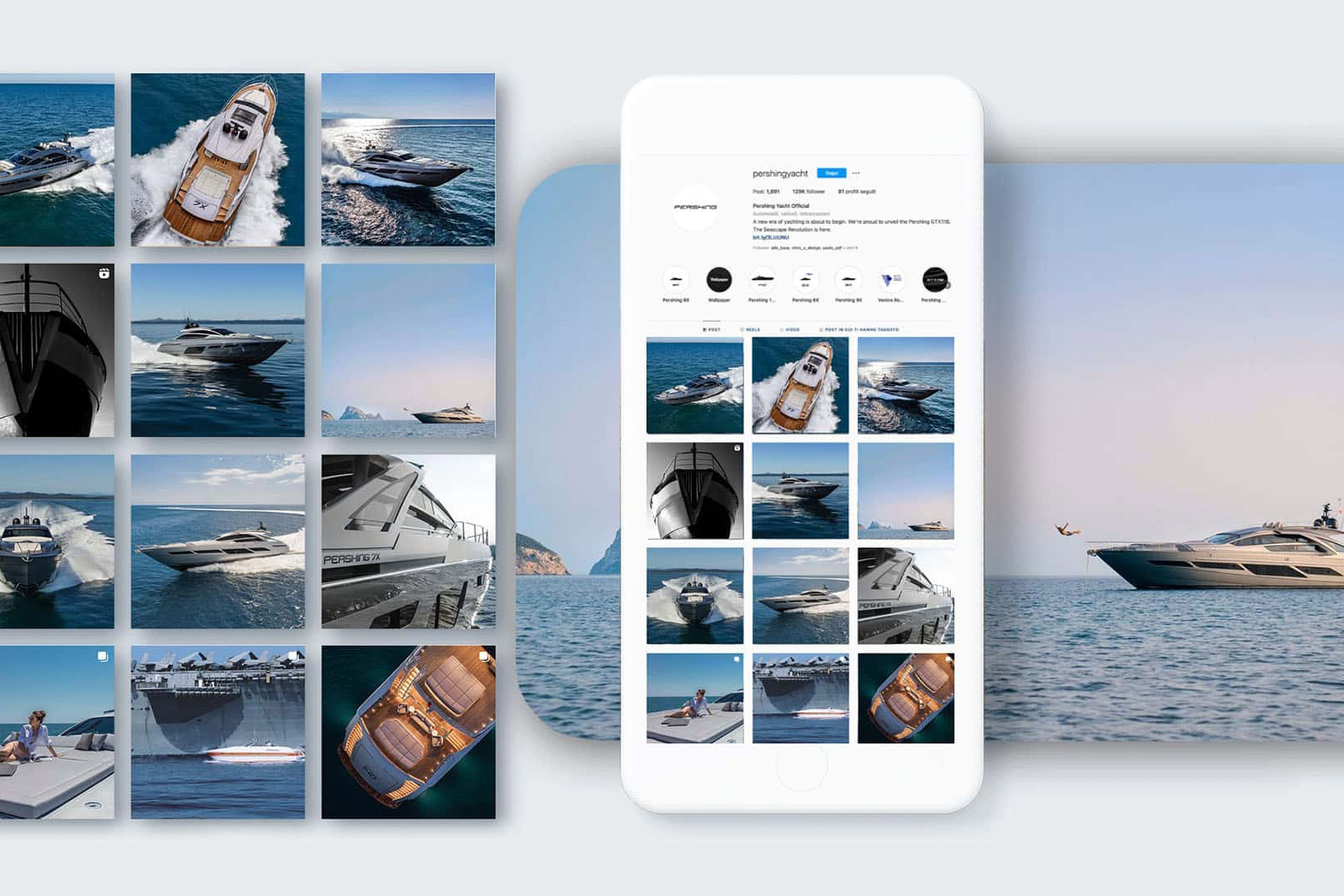 La collaborazione nasce con la X Generation, la gamma più performativa di Pershing, e si estende alla GTX Series, con cui il cantiere ha introdotto il nuovo segmento degli Sport Utility Yacht. Il risultato è un ecosistema di comunicazione più solido, riconoscibile e coerente, basato su una direzione creativa chiara e su un approccio operativo orientato ai risultati.